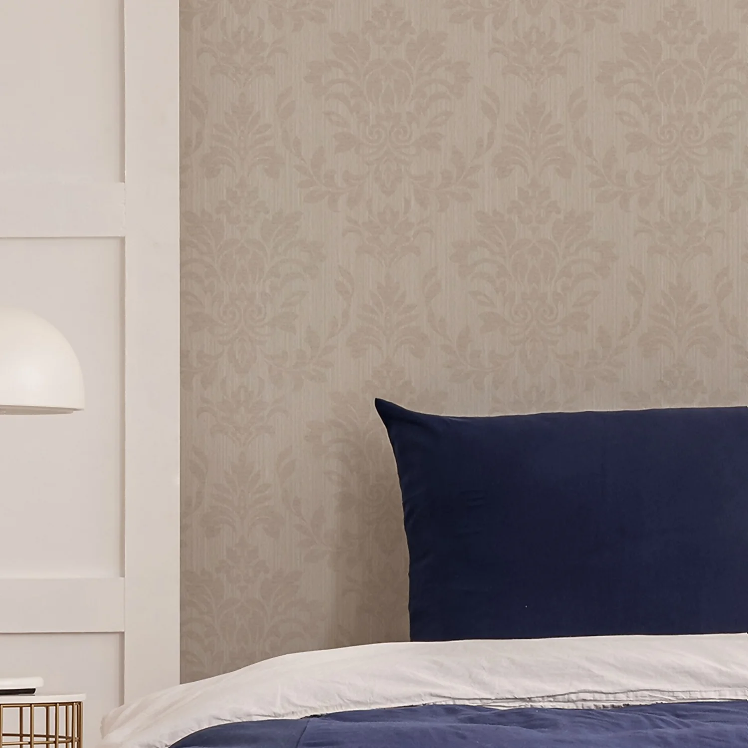 This wallpaper really is a royal piece. With a Champagne colour palette and timeless damask print, this will be a hit in any room in your home. Created on Heavy Weight Vinyl it is hardwearing and gorgeous, so perfect for high traffic areas.