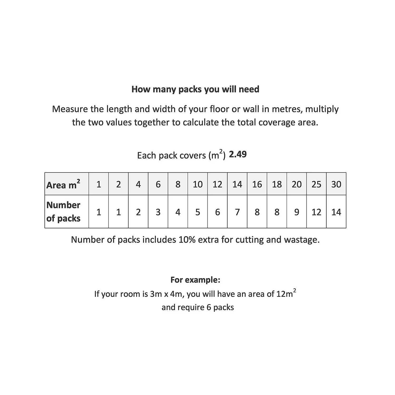 | Coverage Per Pack | 2.49m2 |