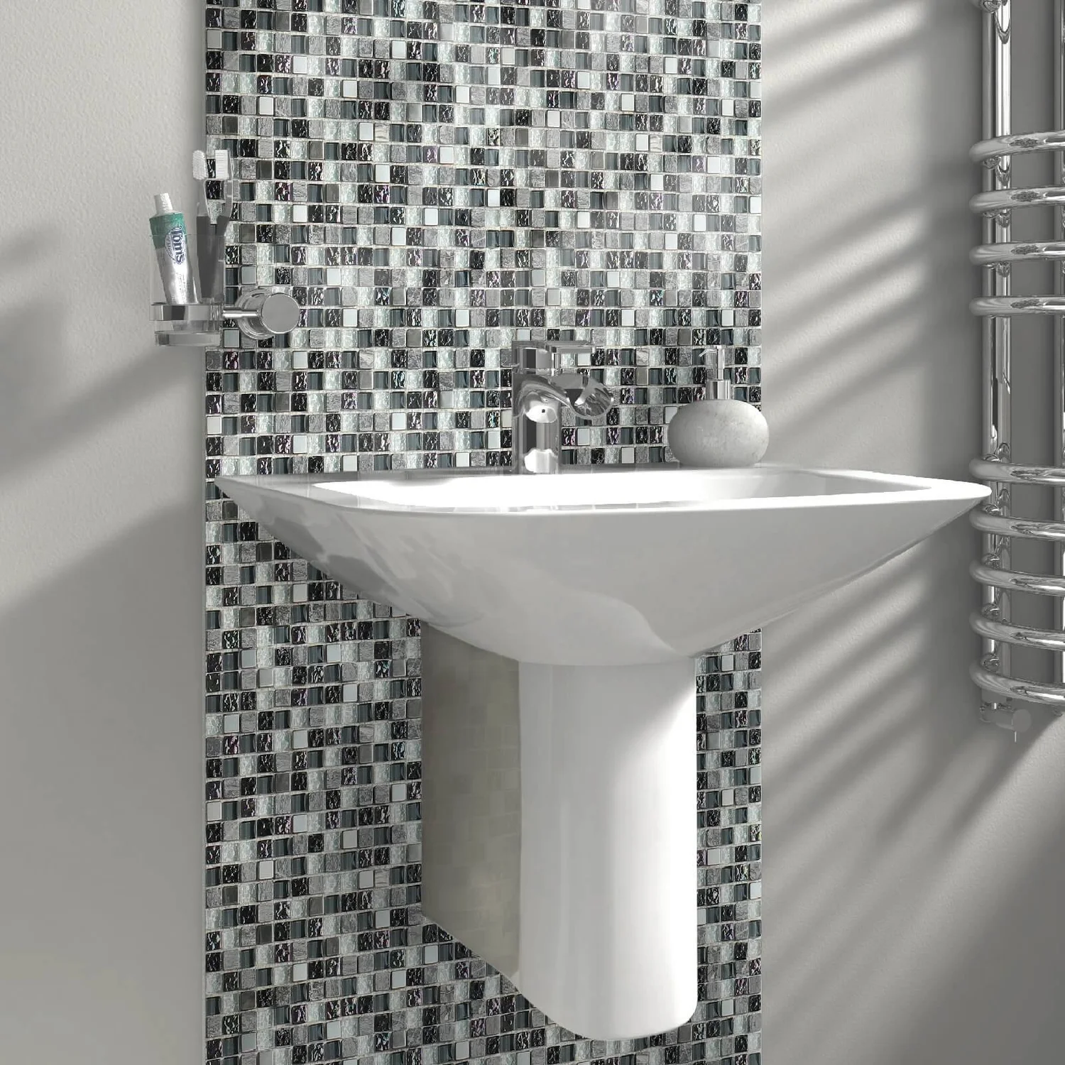 - We recommend matching a white or grey tile to complement this mosaic tile