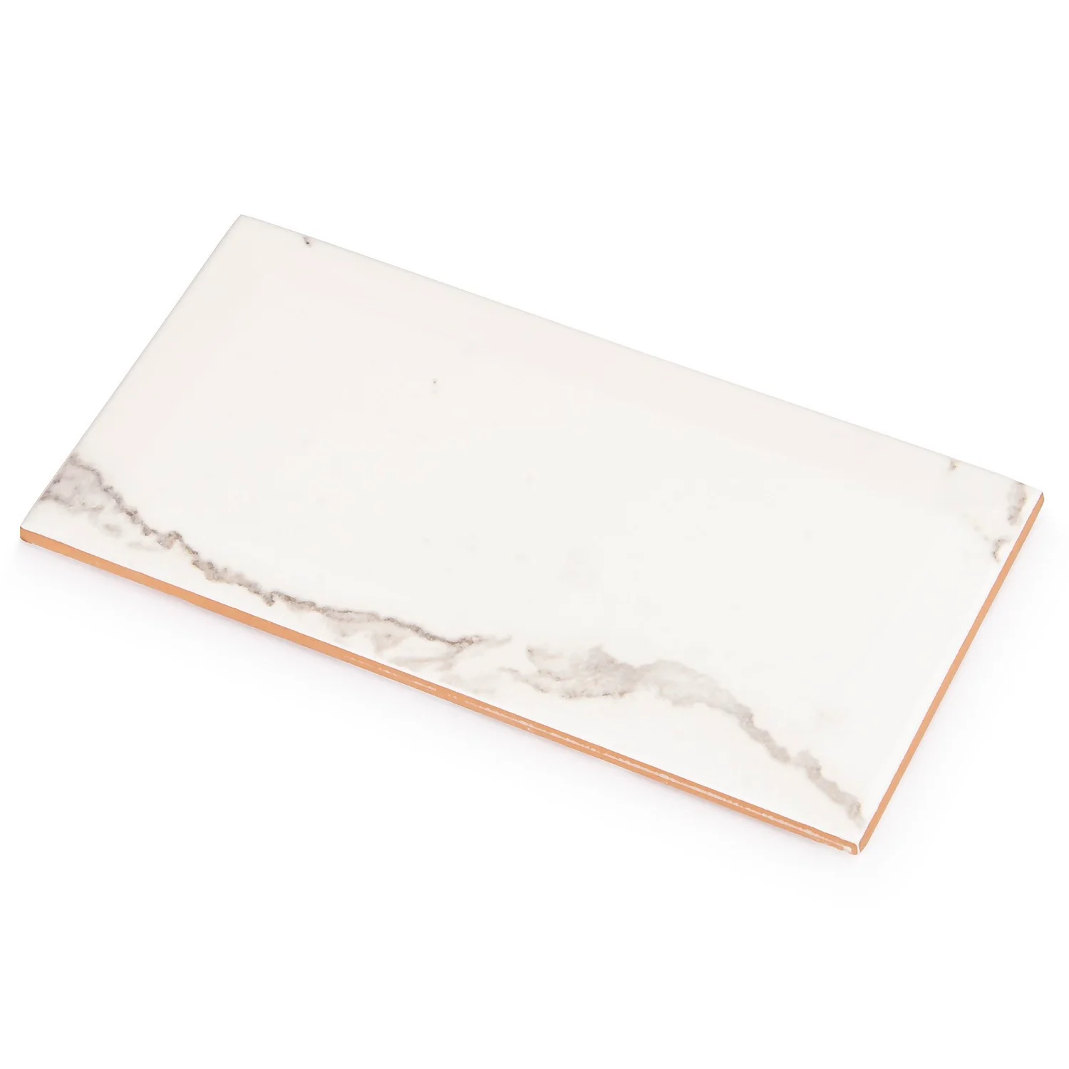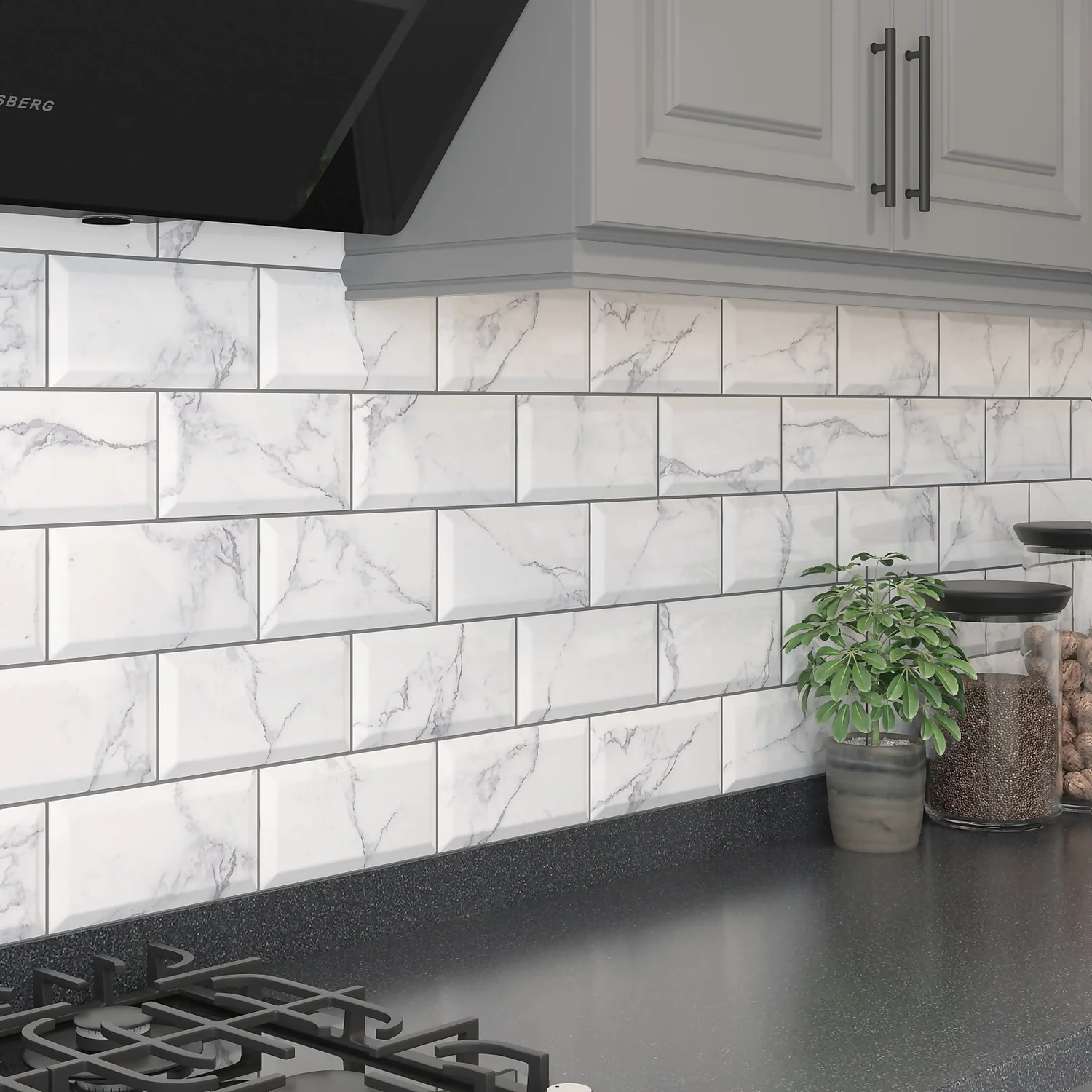 None Metro Carrara Marble Bevelled Ceramic Wall Tile 100 X 200mm